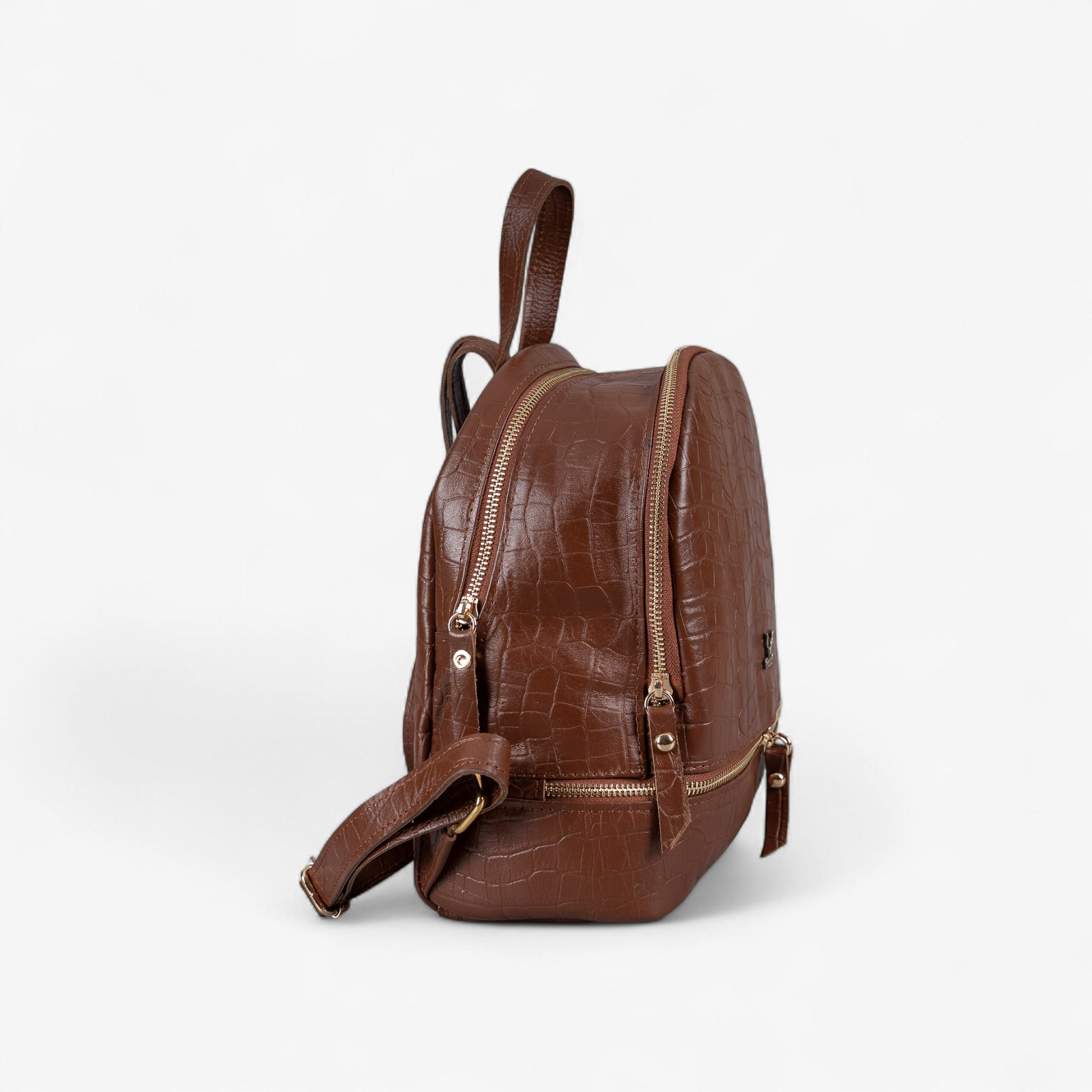 Δερμάτινο καφέ σακίδιο πλάτης με ανάγλυφα διαμερίσματα