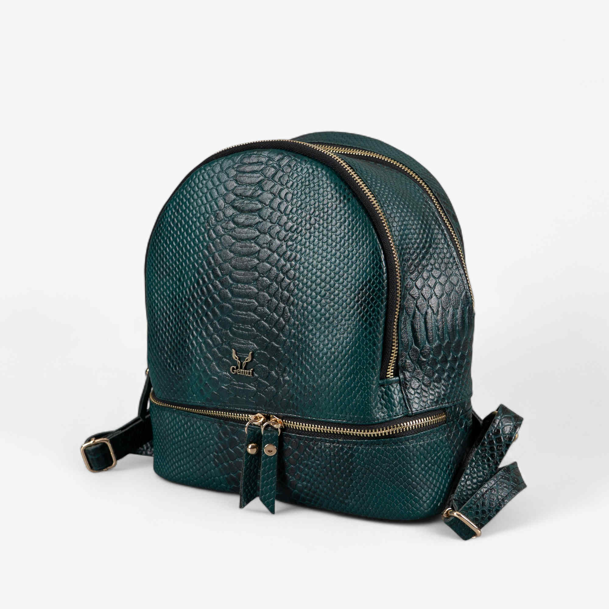 Δερμάτινο κυπαρισσί σακίδιο πλάτης με τρία διαμερίσματα